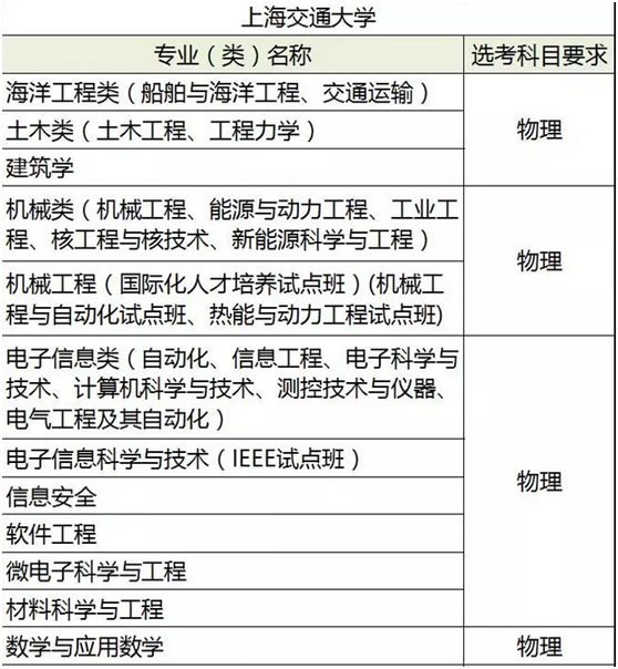 上海是优质大学比较集中的地方,以上海为例,这些大学对高考生选考科目的要求,比较具有代表性。我们选择个别学校的部分专业来看一下选考学科和学校的招生专业。未来参加新高考的家长和同学在考虑和选择专业时,可以此做参考!