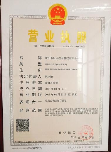 上图:姚小敏担任衢州市启圣教育科技有限公司法人代表