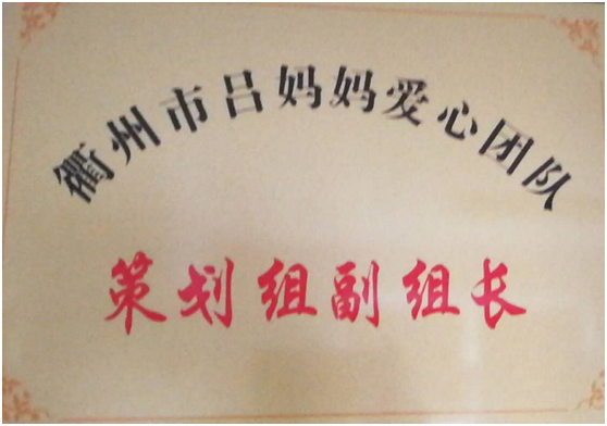 上图:姚小敏担任衢州市吕妈妈爱心团队策划组副组长
