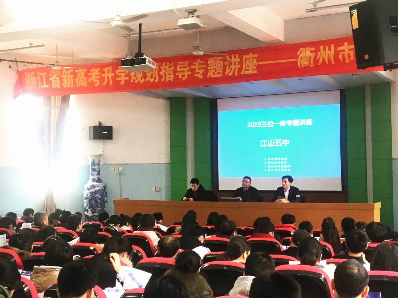 为了帮助广大考生了解自主招生的相关政策及报考指南,更有效地应对高校提前招生,日前江山五中特邀浙江高考数据网、浙江自主招生网、浙江启圣教育升学政策研究中心姚小敏老师对高三学生进行了2019年|“三位一体”本科自主招生以及高职提前招生的升学规划专题讲座。