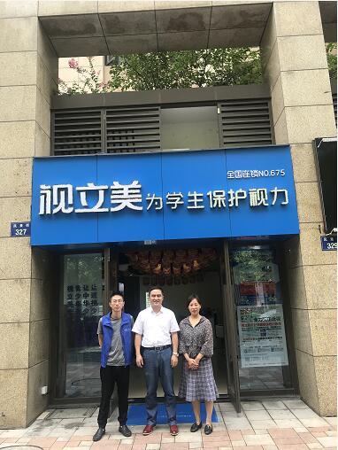 上图:魏任斌教授在考察“视立美”杭州风景街店