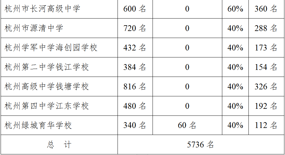 注:1.上表中的“招生总计划数”不含部分学校(校区)面向萧山、余杭、临平、富阳、临安五区的招生计划数。