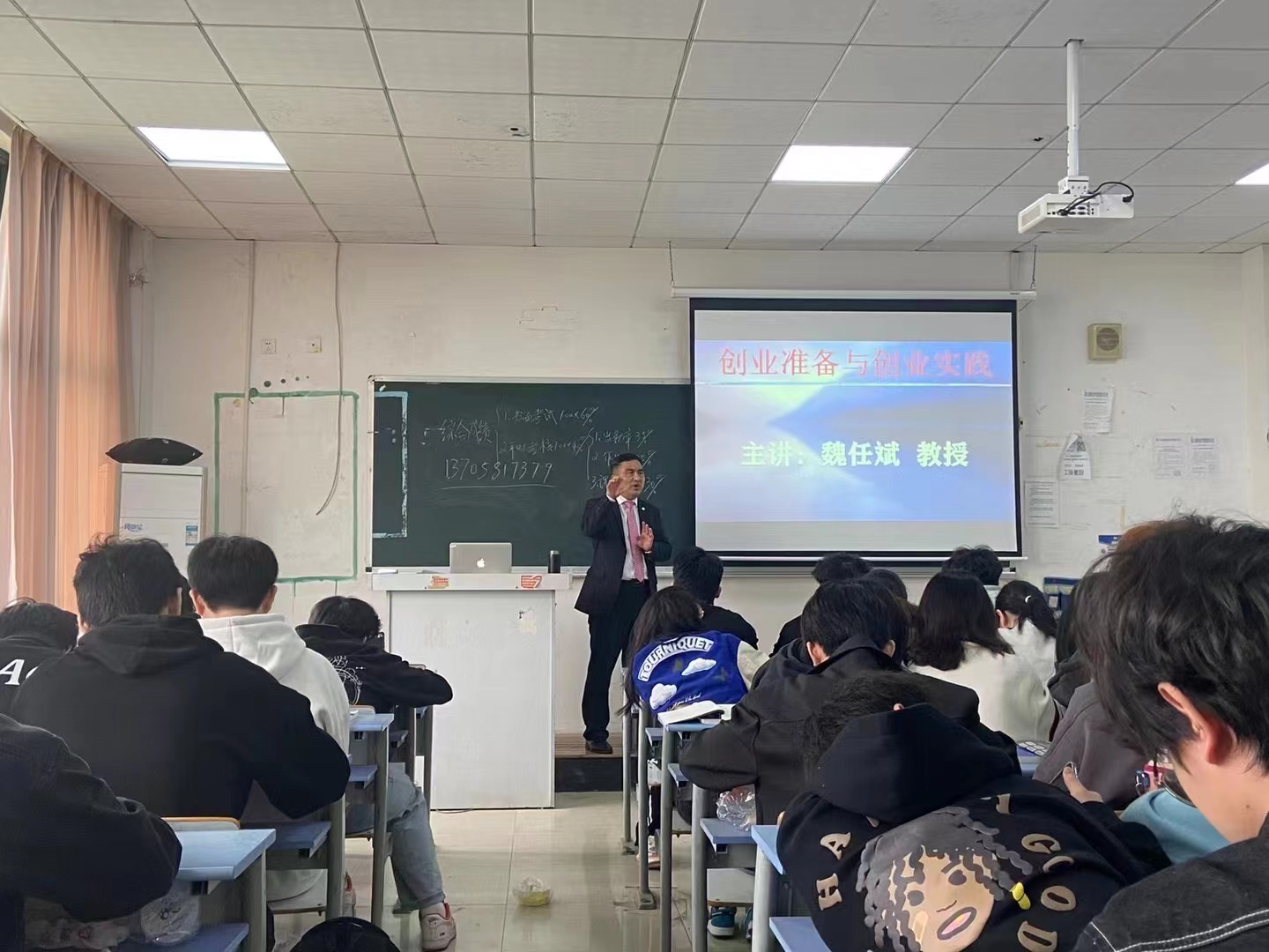 上图;魏任斌教授在辅导创业弟子创业与学习