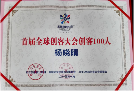 保易通董事长杨晓晴在本次大会,阐述了“拥抱产业互联网时代”和保险业的关系,获得举办方及广大创客精英的一致好评,并荣获了“首届全球创客大会创客100人”证书。