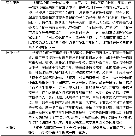 《中国浙江教育研究院李晓2015年11月06日讯》杭州绿城育华学校是一所培养国际视野为教育特色的杭州重点民办中学。凭借优良的学风、校风赢得广大学生家长的高度认可,作为小升初教育研究的专业机构,现对杭州绿城育华学校介绍分享如下: