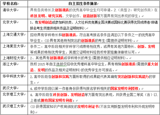 《中国浙江教育研究院李晓2016年2月28日讯》高考升名校还有“捷径”?家长和学生们为此非常关注。自主招生就是高考升名校的“捷径”。国内很多高校针对高中生都有自主招生政策,其中,具有“创新潜质”的学生最受高校青睐。我们摘录了十所高校的自主招生条件。